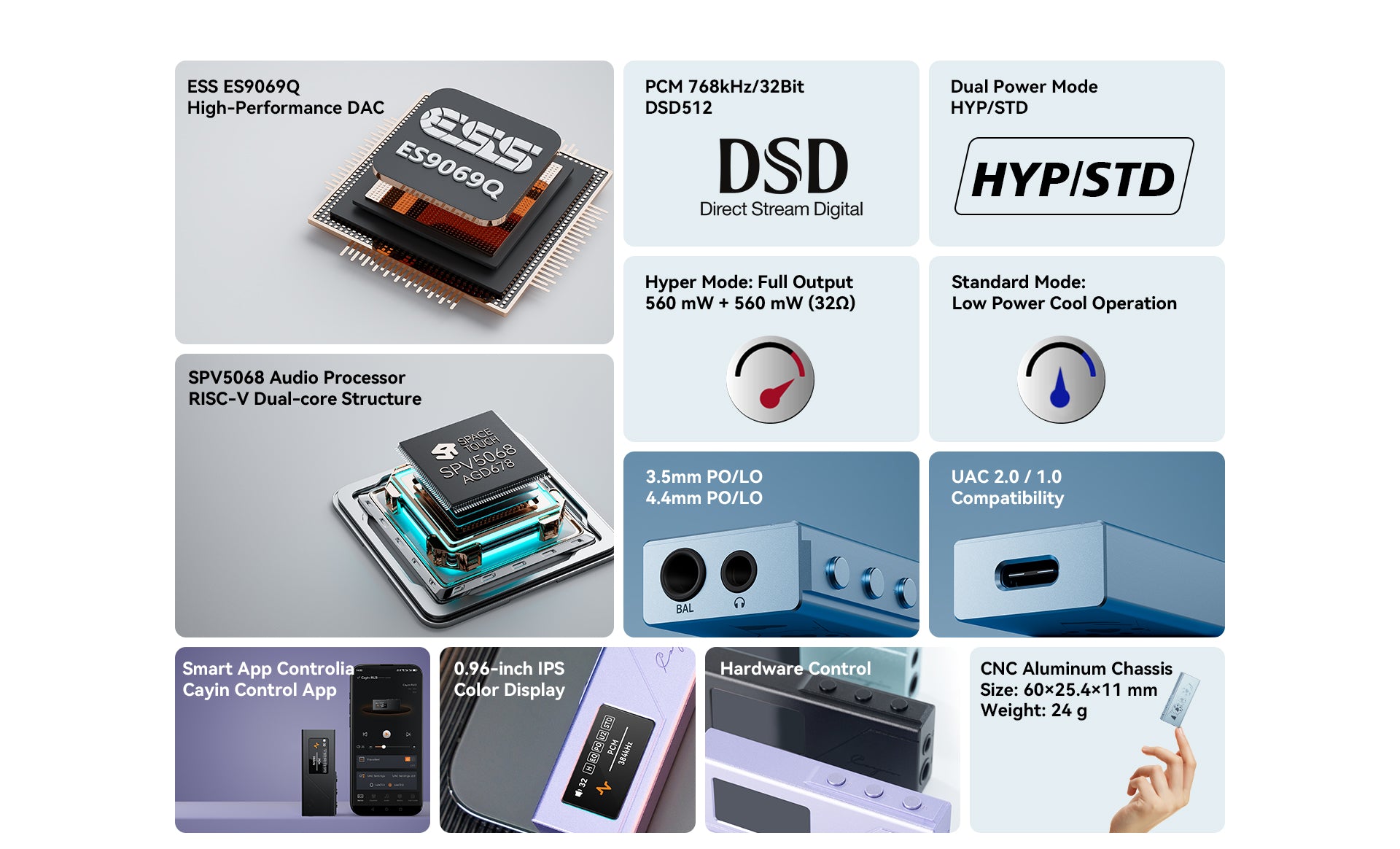 • ESS ES9069Q flagship DAC with HyperStream IV architecture
